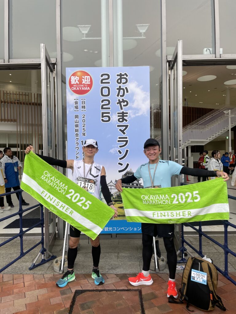 このたび、岡山マラソンに参加し、人生で初めてのフルマラソンを完走いたしました。半年間の準備を経て挑んだ42.195kmは決して楽な道のりではありませんでしたが、結果は 3時間52分。目標としていた 「サブ4」 を達成することができ、達成感と喜びで胸がいっぱいです。
